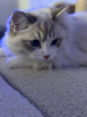 Unsere Chanel ( Azure Eyes Jasmine ) war ein Glücksfall. Schon lange schaute ich für ein Zuchtbüsi aus dieser Zucht. Doch leider waren sie immer alle schon vergeben.